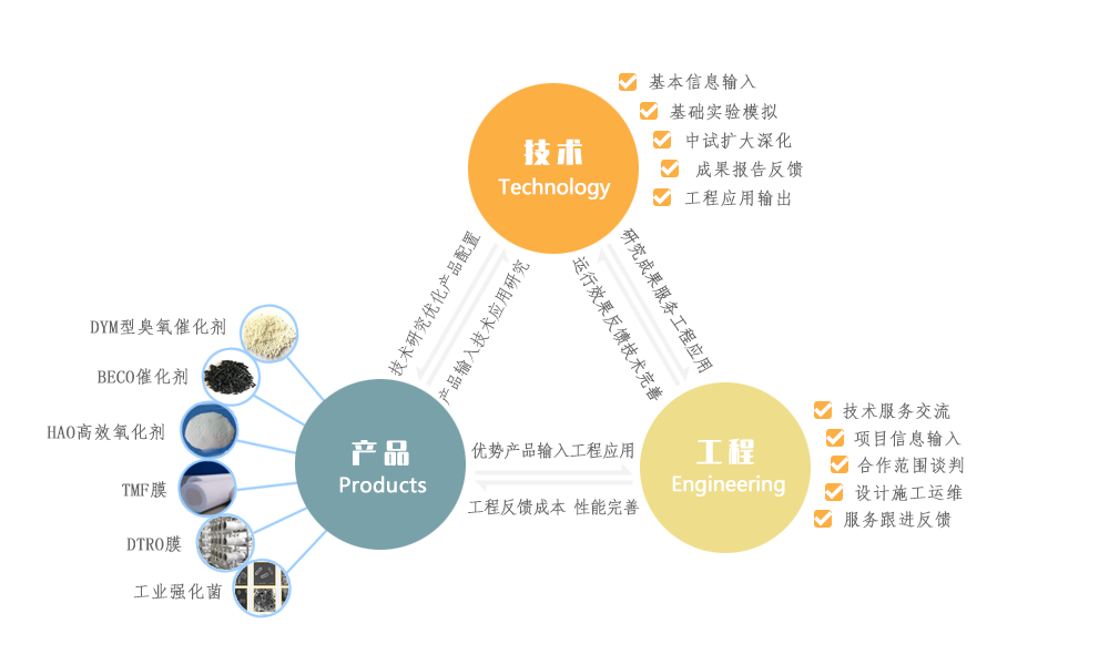 一名环保主要从“技术、工程、产品”3个方面形成独立的业务运作流程,同时,充分发挥三位一体相互反补的优势,确保3条独立的业务运作更加成熟稳健。